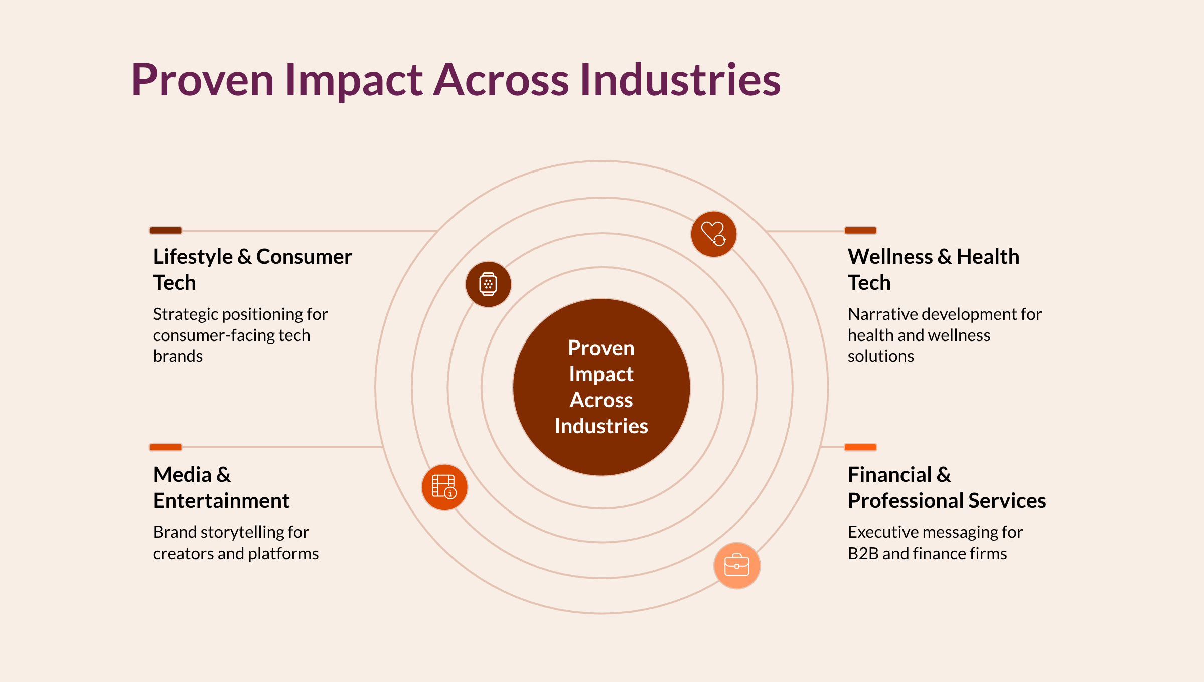 We construct the narrative infrastructure: Brand Story Plan, Core Messaging Framework, Audience Personas, Founder Positioning — everything your team needs to tell a consistent, credible story.